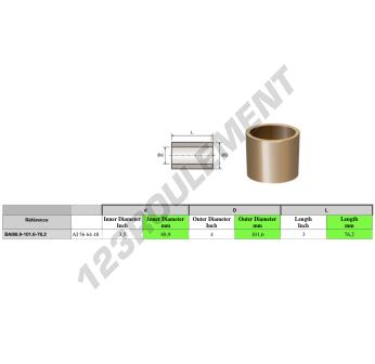 La Bague Bronze connue sous la référence BAI88.90-101.60-76.20 Générique possède un diamètre intérieur de 88.9 mm, un diamètre extérieur de 101.6 mm et une longueur de 76.2 mm. Elle est fabriquée en .