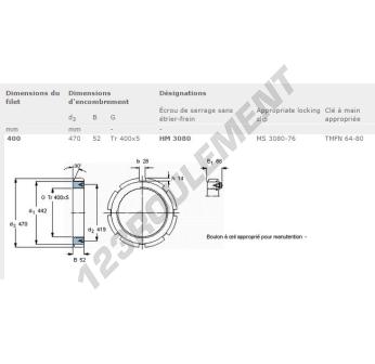 Cet écrou HM3080-SKF possède un diamètre intérieur de 400mm, un diamètre extérieur de 470mm et une épaisseur de 52mm.