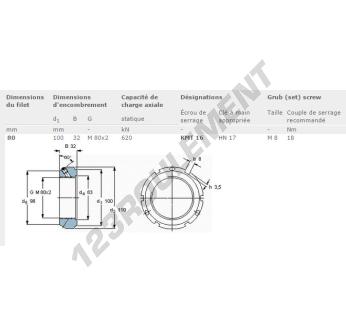 Cet écrou KMT16-SKF possède un diamètre intérieur de 80mm, un diamètre extérieur de 100mm et une épaisseur de 32mm.