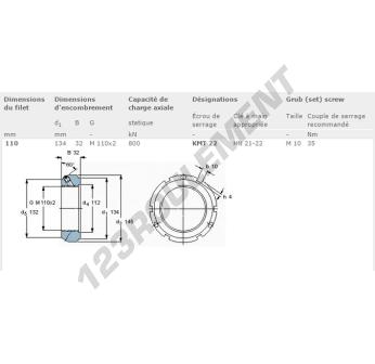 Cet écrou KMT22-SKF possède un diamètre intérieur de 110mm, un diamètre extérieur de 134mm et une épaisseur de 32mm.