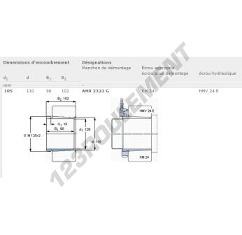 Le Manchon, connu sous la référence AHX2322G-SKF SKF, possède un diamètre intérieur de 105 mm, un diamètre extérieur de 110 mm et une épaisseur de 98 mm.