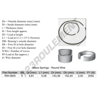 Ressort Ondulé (fil Rond) WSRW-152.40-6-3 Générique, Diamètre intérieur mm, Diamètre extérieur mm, Epaisseur mm, matière