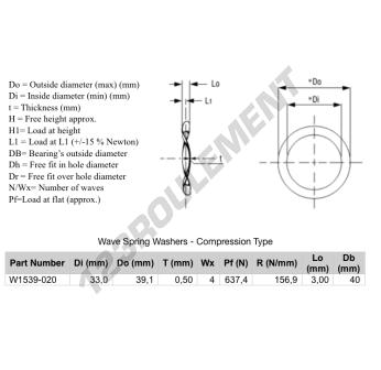 La Rondelle Ondulée - Type Compression de référence WSW-CT-39.100-33-0.500-4 possède un diamètre intérieur de 33 mm, un diamètre extérieur de 39.1 mm et une épaisseur de 0.5 mm. Elle est fabriquée en matière ACIER.
