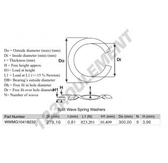 La Rondelle Ondulée Fendue de référence SWSW-300-279.16-0.71-9 possède un diamètre intérieur de 279.16 mm et une épaisseur de 0.71 mm. Elle est fabriquée en matière ACIER.