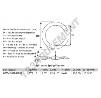 La Rondelle Ondulée Fendue de référence SWSW-400-379.16-1.07-10 possède un diamètre intérieur de 379.16 mm et une épaisseur de 1.07 mm. Elle est fabriquée en matière ACIER.