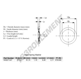 La Rondelle Ondulée de référence WSW-117.53-91.74-1.19 possède un diamètre intérieur de 91.74 mm et une épaisseur de 1.19 mm. Elle est fabriquée en matière ACIER.