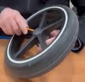 1. Retirer la roue : en fonction du modèle de poussette que vous possédez, retirez les vis, ou déclipsez la.