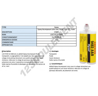 La Loctite EA-9483 400ML est une colle époxy bi-composant en grand format, idéale pour des applications industrielles de plus grande taille, offrant une adhésion forte et une résistance exceptionnelle aux contraintes thermiques et mécaniques.