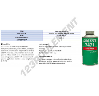 Le Loctite SF 7471 150ML est un activateur de haute performance de 150ML, conçu pour améliorer l'adhérence des adhésifs, en particulier sur des surfaces difficiles. Idéal pour des applications industrielles nécessitant un séchage rapide et une performance optimale.