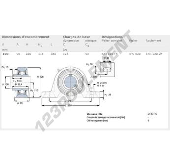 Le Palier - 2 Fixations connu sous la référence SYJ100-TF-SKF SKF possède un diamètre d'alésage de 100 mm et un entraxe de fixation de 308 mm. Cette référence est fabriquée en fonte et le type de serrage se fait par vis de blocage.