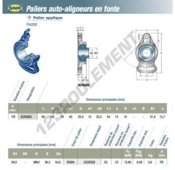 Le Palier - 2 Fixations connu sous la référence UCFA202-SNR SNR possède un diamètre d'alésage de 15 mm et un entraxe de fixation de 78 mm. Cette référence est fabriquée en fonte et le type de serrage se fait par vis de blocage.