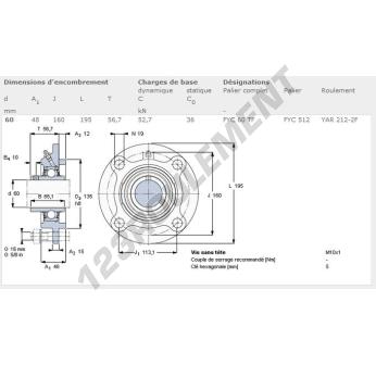 Le Palier - 4 Fixations connu sous la référence FYC60-TF-SKF de la marque SKF possède un diamètre d'alésage de 60 mm et un entraxe de fixation de 113.1 mm. Cette référence est fabriquée en fonte et le type de serrage se fait par Sans blocage.