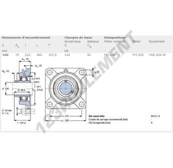 Le Palier - 4 Fixations connu sous la référence FYJ100TF-SKF de la marque SKF possède un diamètre d'alésage de 100 mm et un entraxe de fixation de 210 mm. Cette référence est fabriquée en fonte et le type de serrage se fait par vis de blocage.