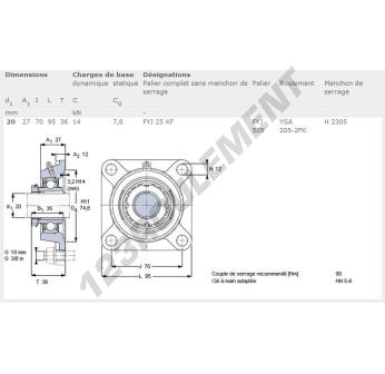 205 = dimensions du roulement et du palier
