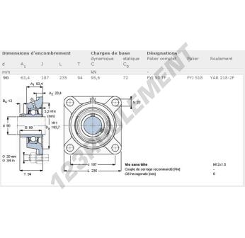Le Palier - 4 Fixations connu sous la référence FYJ90-TF-SKF de la marque SKF possède un diamètre d'alésage de 90 mm et un entraxe de fixation de 187 mm. Cette référence est fabriquée en fonte et le type de serrage se fait par vis de blocage.