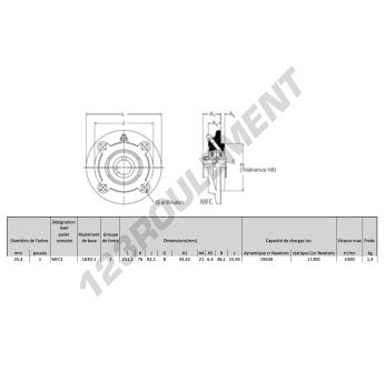 Le Palier - 4 Fixations connu sous la référence MFC1-RHP de la marque RHP possède un diamètre d'alésage de 25 mm et un entraxe de fixation de 92.1 mm. Cette référence est fabriquée en fonte et le type de serrage se fait par vis de blocage.