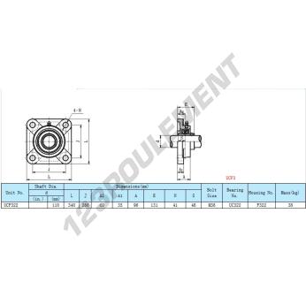 Le Palier - 4 Fixations connu sous la référence UCF322 de la marque Générique possède un diamètre d'alésage de 110 mm et un entraxe de fixation de 266 mm. Cette référence est fabriquée en fonte et le type de serrage se fait par vis de blocage.