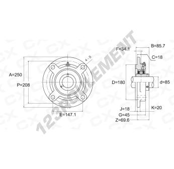 205 = dimensions du roulement et du palier