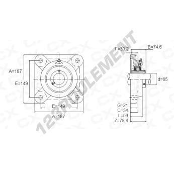 Le Palier - 4 Fixations connu sous la référence UCFX13 de la marque Générique possède un diamètre d'alésage de 65 mm et un entraxe de fixation de 149 mm. Cette référence est fabriquée en fonte et le type de serrage se fait par vis de blocage.