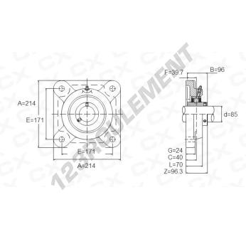 Le Palier - 4 Fixations connu sous la référence UCFX17 de la marque Générique possède un diamètre d'alésage de 85 mm et un entraxe de fixation de 171 mm. Cette référence est fabriquée en fonte et le type de serrage se fait par vis de blocage.