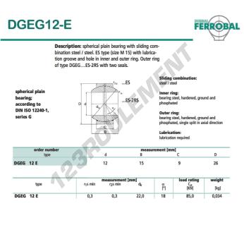 La Rotule Ge connue sous la référence DGEG12-E-DURBAL, de la marque DURBAL possède un diamètre intérieur de 12mm, un diamètre extérieur de 26mm et une épaisseur de 15mm.