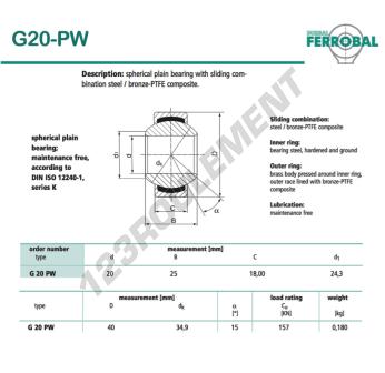 La Rotule Geew connue sous la référence DG20-PW-DURBAL, de la marque DURBAL possède un diamètre intérieur de 20mm, un diamètre extérieur de 40mm et une épaisseur de 18mm.