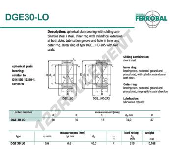 La Rotule Geg connue sous la référence DGE30-LO-DURBAL DURBAL possède un diamètre intérieur de 30 mm, un diamètre extérieur de 47 mm et une épaisseur de 18 mm.