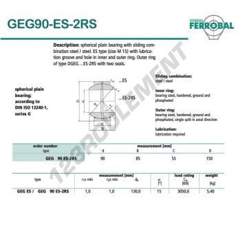 La Rotule Geg connue sous la référence GEG90-ES-2RS-DURBAL DURBAL possède un diamètre intérieur de 90 mm, un diamètre extérieur de 150 mm et une épaisseur de 55 mm.