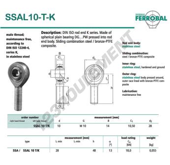 La Rotule Sa connue sous la référence DSSAL10-T-K-DURBAL, de la marque DURBAL possède un pas de vis de et un Filetage à gauche, un diamètre intérieur de 10mm, un diamètre extérieur de 28mm et une épaisseur de 14mm.