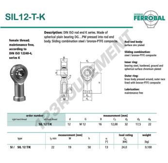 La Rotule Si connue sous la référence SIL12-T-K-DURBAL, de la marque DURBAL possède un diamètre intérieur de 12mm, un diamètre extérieur de 32mm et une épaisseur de 16mm.