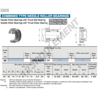 La Cage à Aiguilles, connue sous la référence NKX50Z-IKO, de la marque IKO, possède un diamètre intérieur de 50 mm, un diamètre extérieur de 62 mm et une épaisseur de 35 mm.