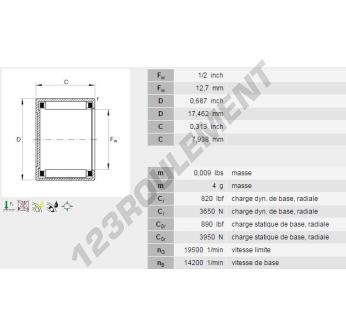 La Douille à Aiguilles, connue sous la référence BCE85-INA, de la marque INA, possède un diamètre intérieur de 12.7 mm, un diamètre extérieur de 17.46 mm et une épaisseur de 7.92 mm.