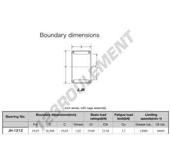 La Douille à Aiguilles, connue sous la référence JH-1212-JTEKT, de la marque JTEKT, possède un diamètre intérieur de 19.05 mm, un diamètre extérieur de 26.988 mm et une épaisseur de 19.05 mm.