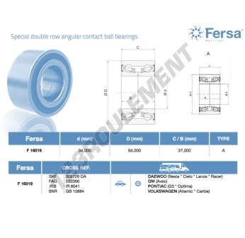 Le Roulement à Billes, connu sous la référence 516019-ASFERSA, de la marque ASFERSA, possède un diamètre intérieur de 34mm, un diamètre extérieur de 64mm et une épaisseur de 37mm.