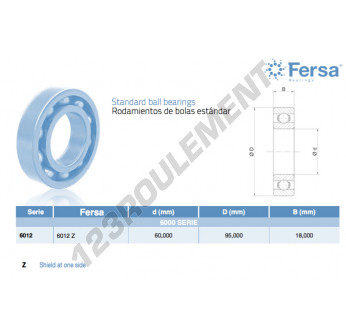 Le Roulement à Billes, connu sous la référence 6012-Z-ASFERSA, de la marque ASFERSA, possède un diamètre intérieur de 60mm, un diamètre extérieur de 95mm et une épaisseur de 18mm.
