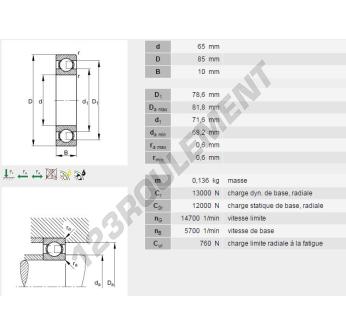 Le Roulement à Billes, connu sous la référence 61813-Y-INA, de la marque INA, possède un diamètre intérieur de 65mm, un diamètre extérieur de 85mm et une épaisseur de 10mm.