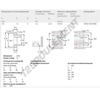 Le Roulement à Billes, connu sous la référence 7002CD-P4A-SKF, de la marque SKF, possède un diamètre intérieur de 15mm, un diamètre extérieur de 32mm et une épaisseur de 9mm.