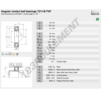 Le Roulement à Billes, connu sous la référence 7211-B-XL-TVP-FAG, de la marque FAG, possède un diamètre intérieur de 55mm, un diamètre extérieur de 100mm et une épaisseur de 21mm.