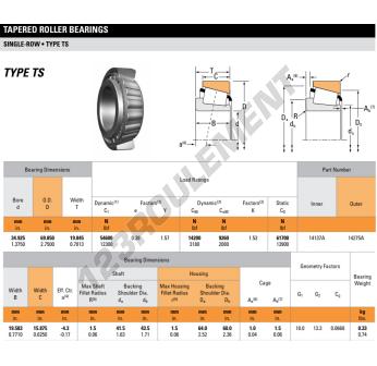 Le Roulement Conique, connu sous la référence 14137A-14275A-TIMKEN, de la marque TIMKEN, possède un diamètre intérieur de 34.93mm, un diamètre extérieur de 69.85mm et une épaisseur de 19.85mm.