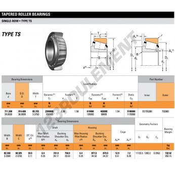 Le Roulement Conique, connu sous la référence EE755280-755360-TIMKEN, de la marque TIMKEN, possède un diamètre intérieur de 711.2mm, un diamètre extérieur de 914.4mm et une épaisseur de 85.725mm.