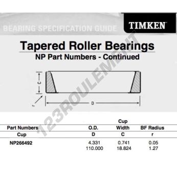 La Cuvette, connue sous la référence NP266492-TIMKEN, de la marque TIMKEN, possède un diamètre extérieur de 110mm.