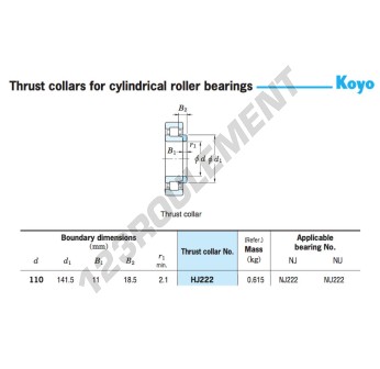 Le Roulement à Rouleaux, connu sous la référence HJ222-JTEKT, de la marque JTEKT, possède un diamètre intérieur de 110 mm, un diamètre extérieur de 141.5 mm et une épaisseur de 11 mm.